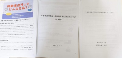 今月の研修は虐待防止と身体拘束廃止に関する研修です①19日(金)9:30~10:30②22日(月)11:45~12:...
